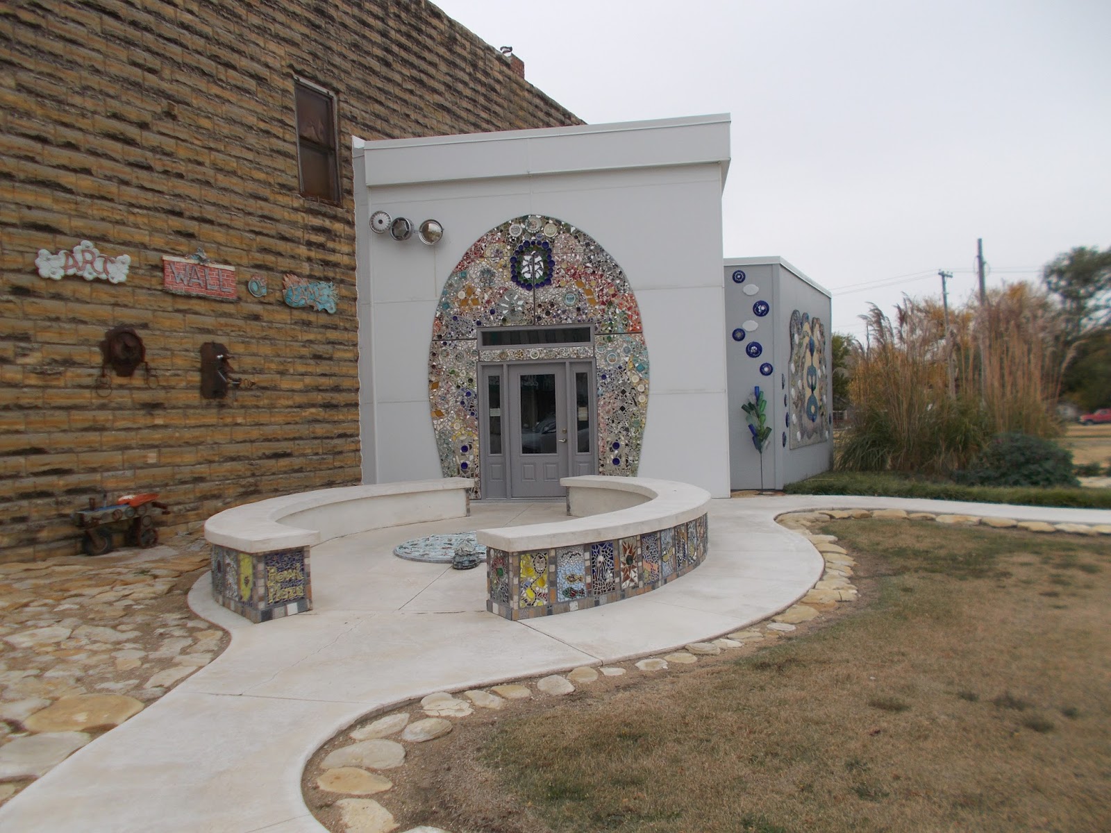 The second art installation we went to see was the Lucas Public Washroom. Yes washroom. Lucas applied for a government grant to build a public loo but were turned down. They then applied for a grant to create an art piece and were approved. They chose to build a grass roots art installation that also functions as a bathroom. It is very whimsical and fun.